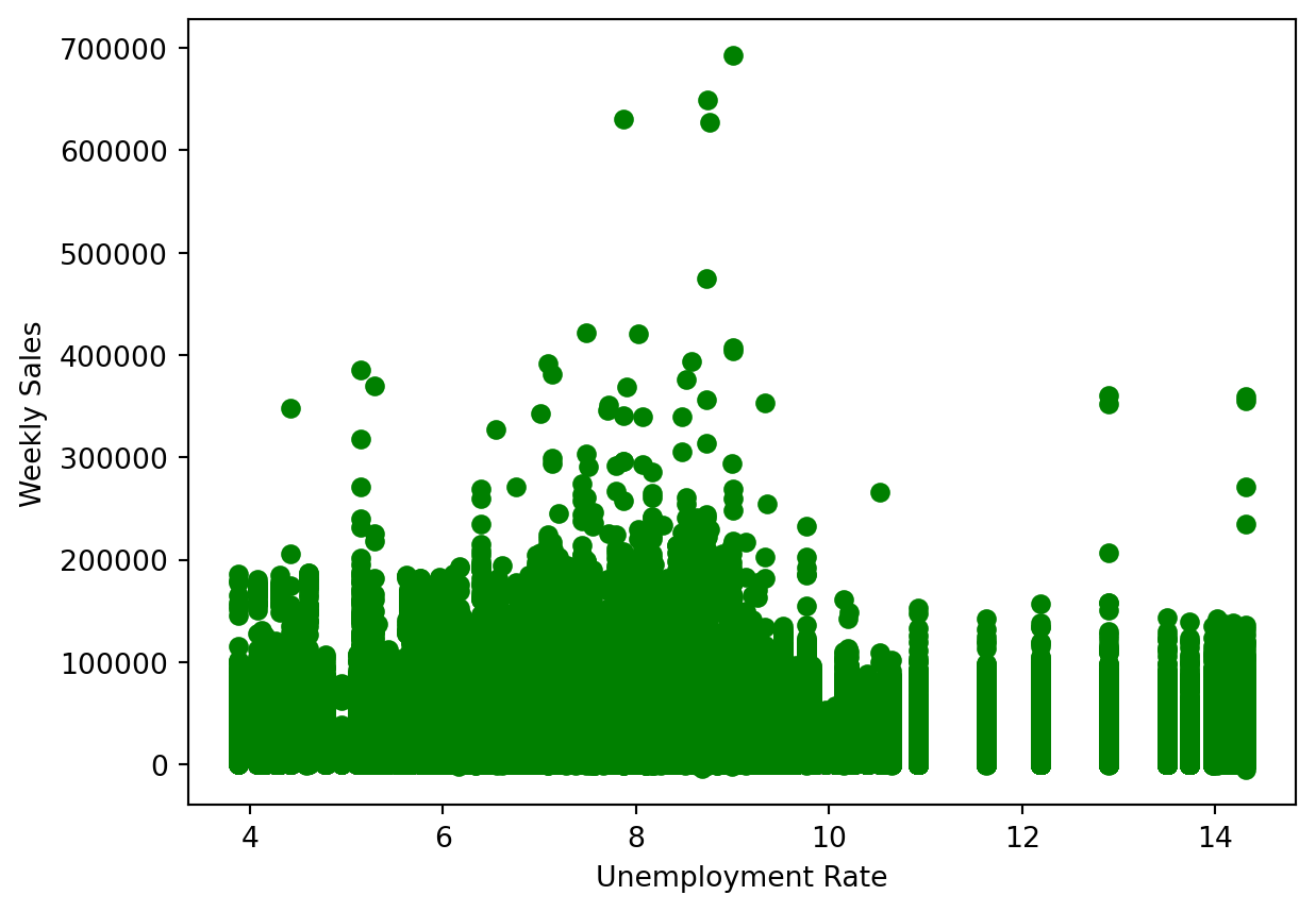 Let’s take a look at how the unemployment rate at the time affected the weekly sales.