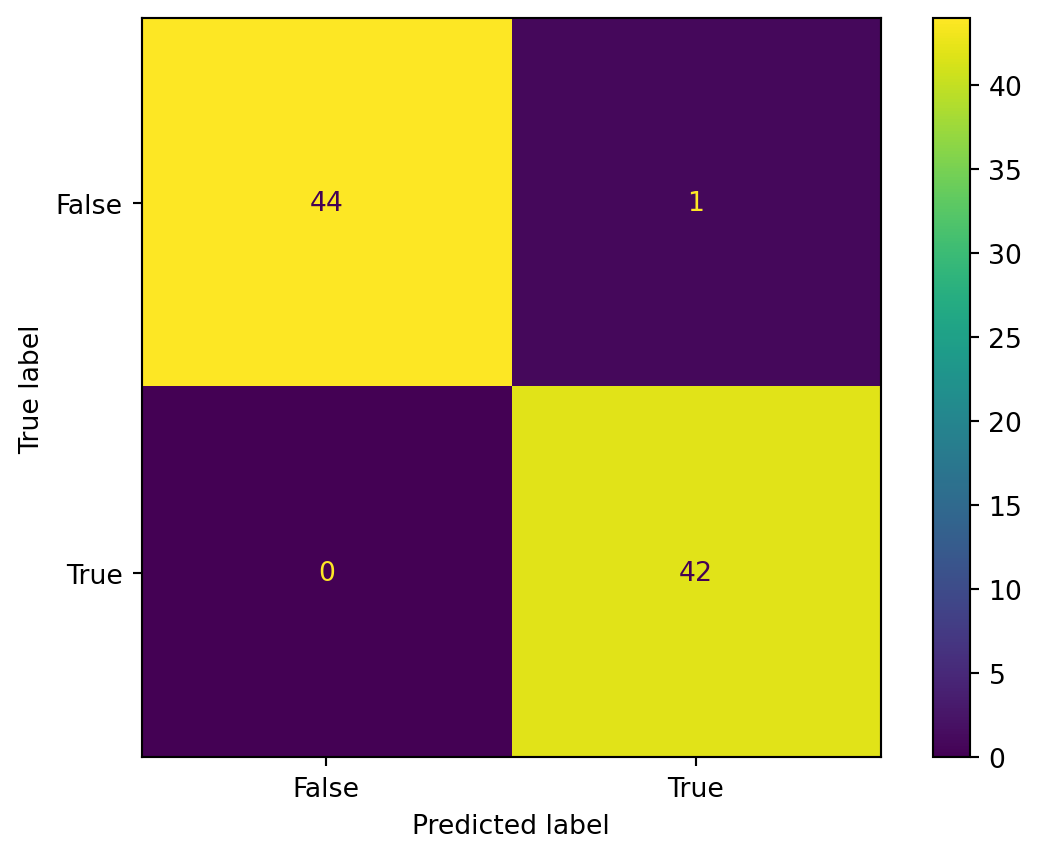 cm_display = ConfusionMatrixDisplay(confusion_matrix = confusion, display_labels = [False, True])